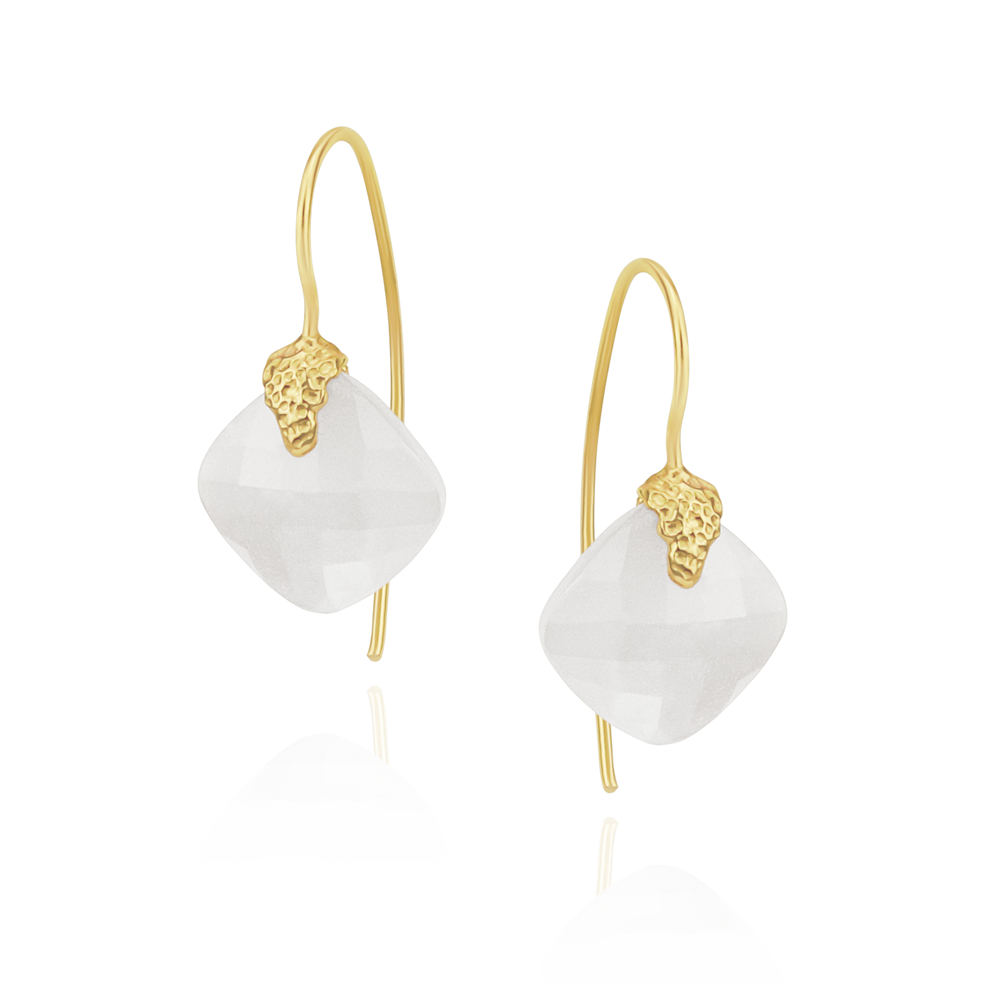 Large cushion cut moonstone (12mm) earrings perfect for a special occasion. These statement earrings are available in 18ct gold plated silver and sterling silver. Approximately 3 cm x 1.4 cm.