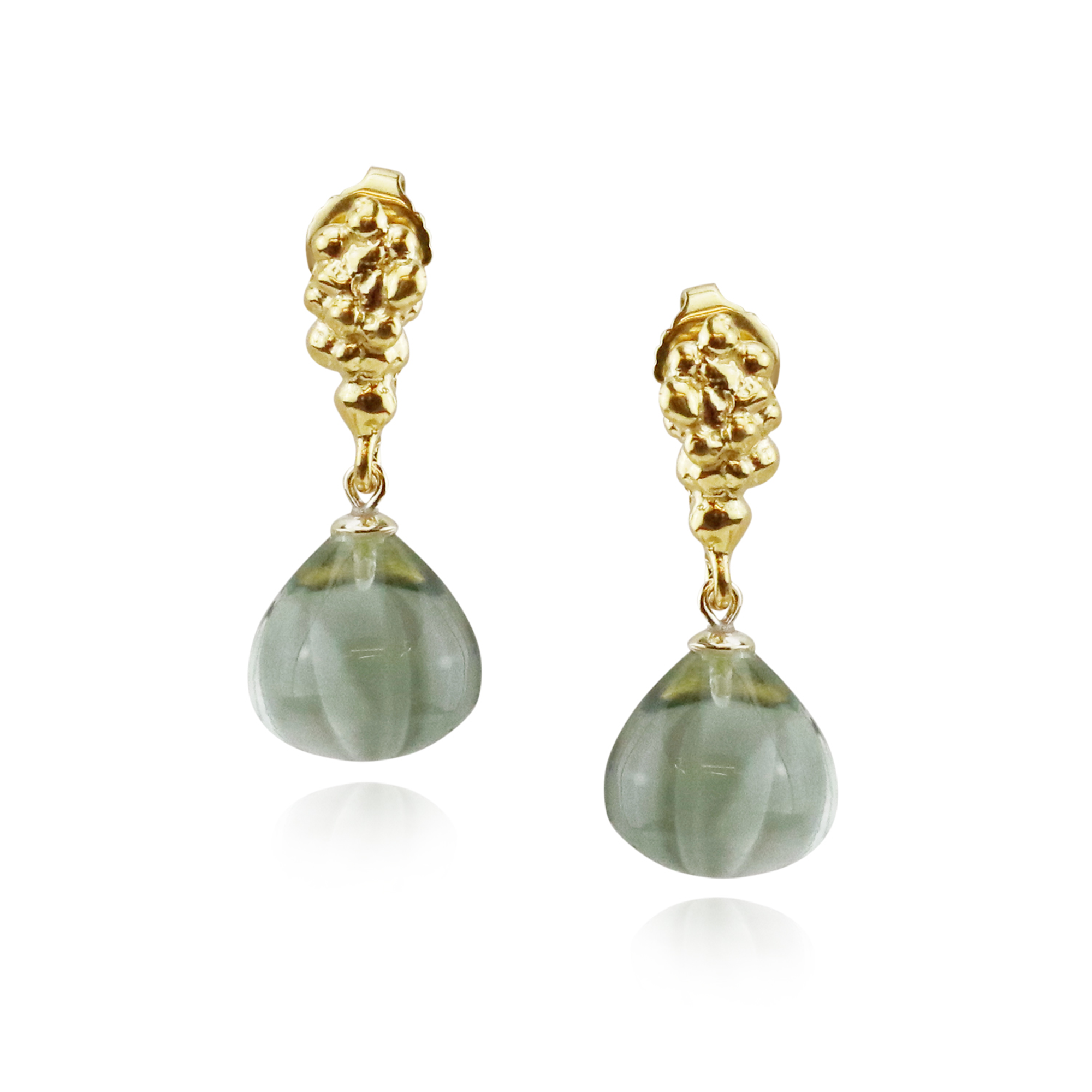 Green amethyst earrings with granulated texture studs. These vermeil earrings are made with smooth and unfaceted stones. They're the perfect size earrings to make a subtle statement without overpowering your look. Available in a variety of colours for you to choose. Approximately 2.7cm x 1cm.