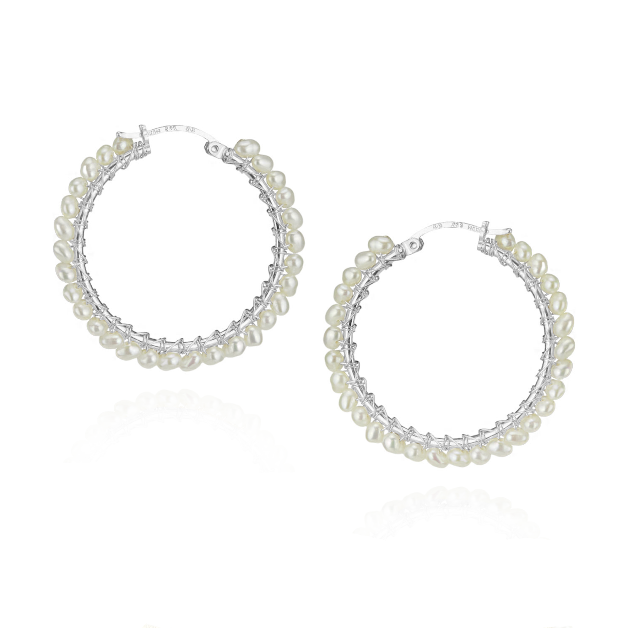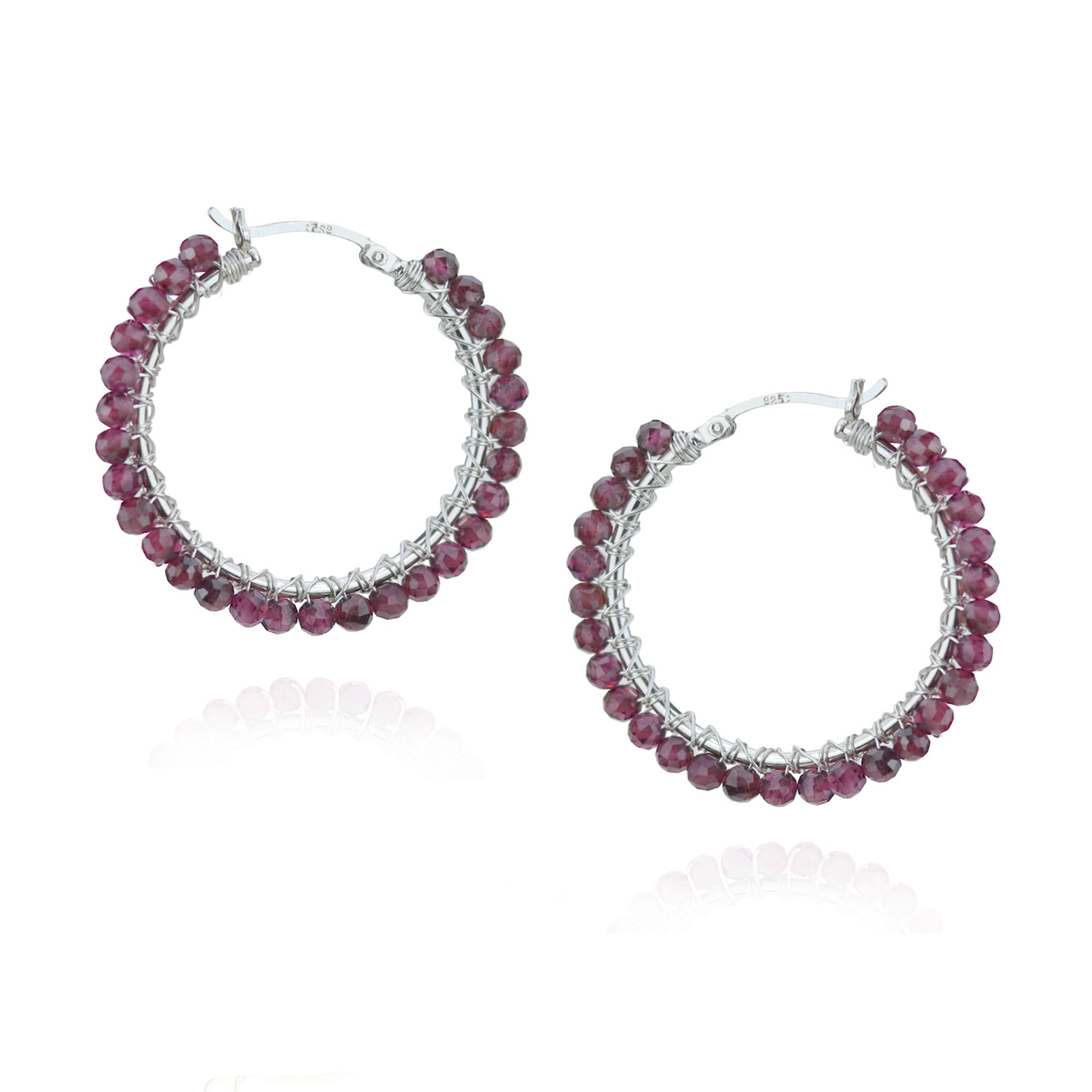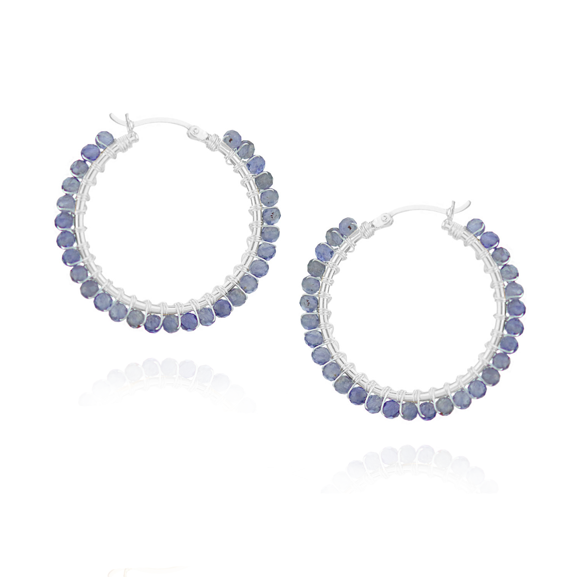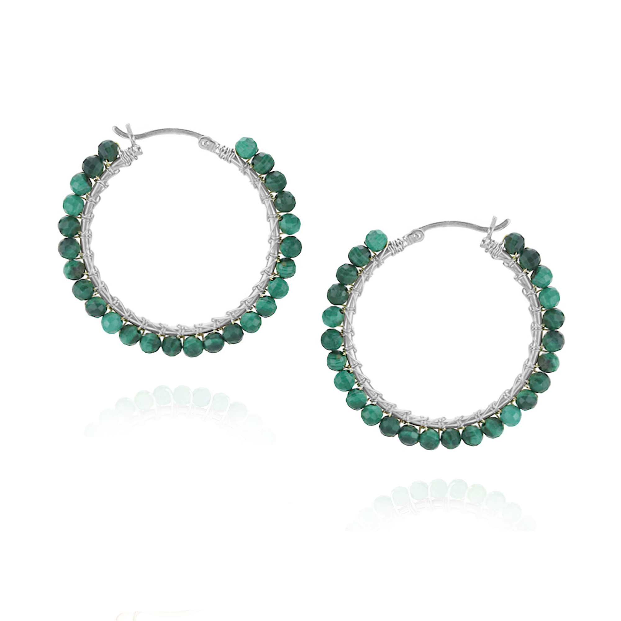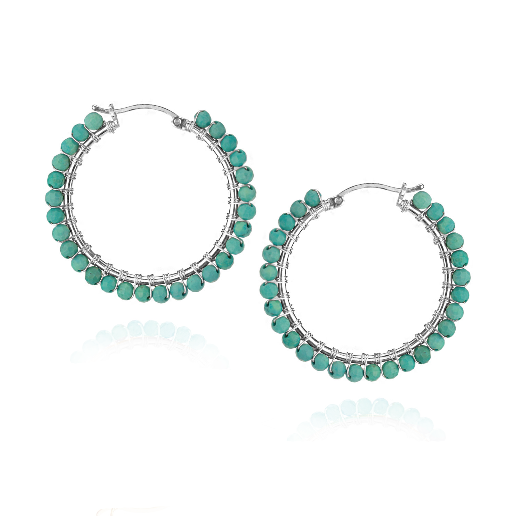 Large Hinged hoop earrings with hand wrapped  beads. These latch back earrings are so secure; they're the ideal pair of earrings to be worn all day, everyday! Approximately 3.5 cm x 3.5 cm.