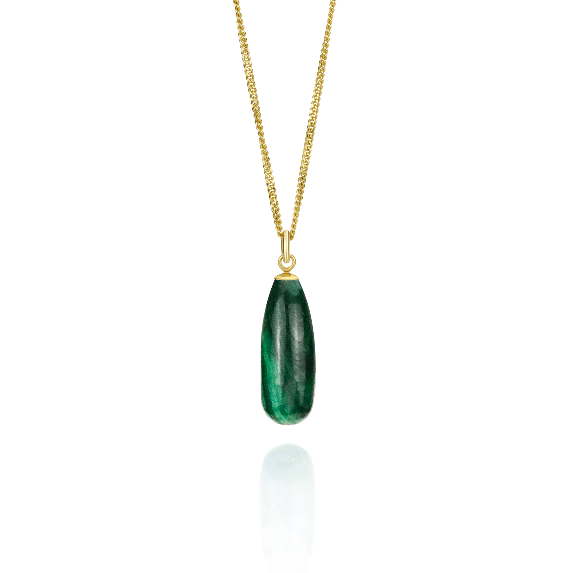 This striking long teardrop gemstone pendant is a timeless piece that brings sophistication to any outfit. The graceful elongated silhouette showcases the natural beauty of the gemstone, catching light beautifully as you move throughout your day. Approximately 16 in with 2 in extension, 1.8 cm x 0.7 cm pendant.