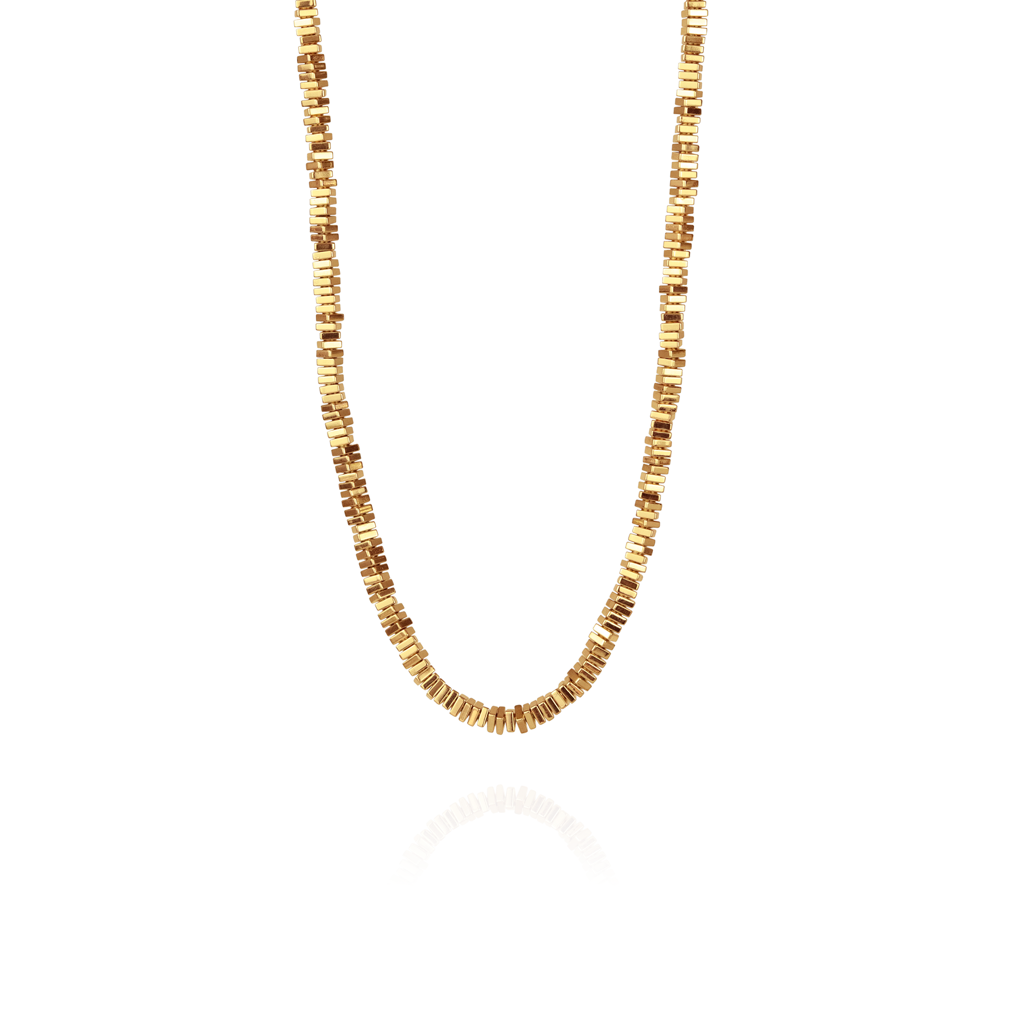 Refresh your everyday style with this tile shaped beaded necklace, crafted from beautifully plated hematite beads. Designed to mimic the sleek shine of sterling silver and vermeil, it offers a polished, high end look without the premium price. Each semi precious bead is cut into smooth, flat tiles for a modern, reflective finish that catches the light. Perfect for layering or wearing solo, it adds effortless elegance to any outfit. Approximately 16 in with 1 in extension.