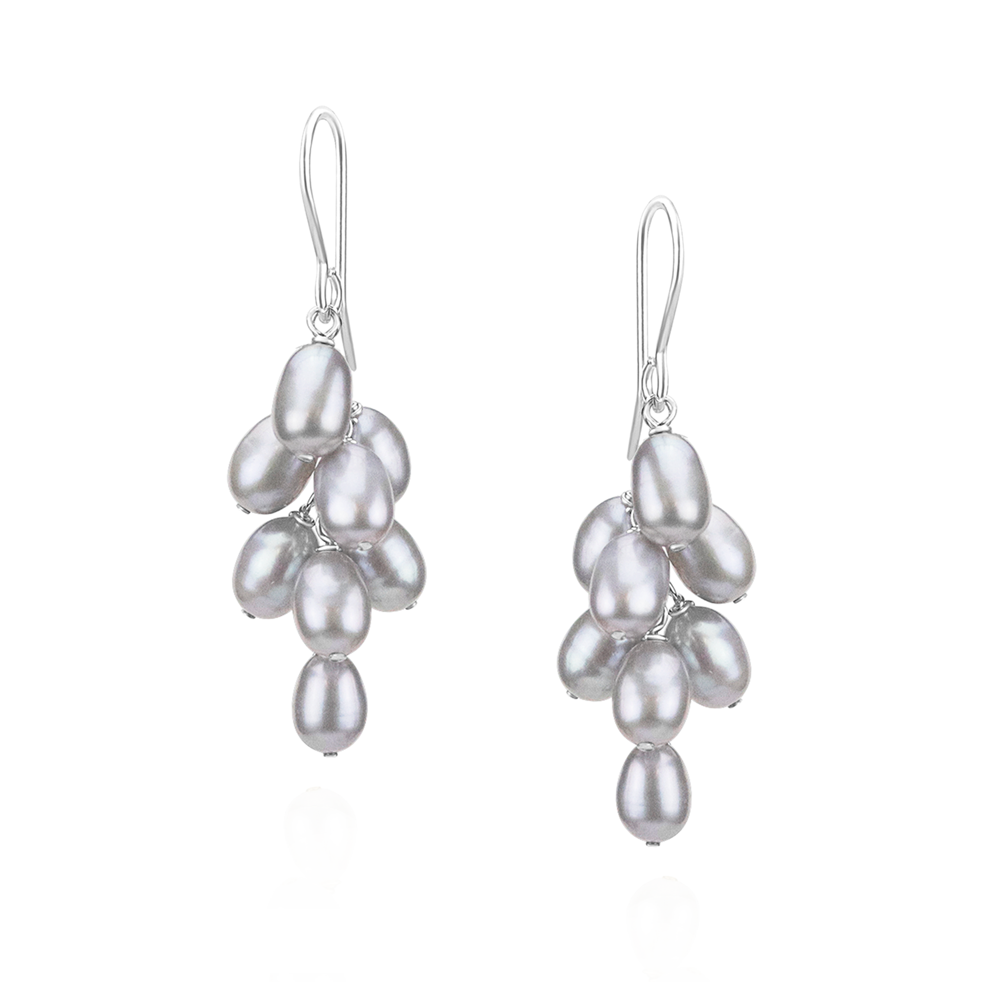 These cluster earrings have delicate graduating stones of rice pearl beads suspended from fish hooks. They're versatile, light and comfortable. Easy to wear all day and night! These best selling earrings are also available with seed pearls. Approximately 4.5 cm x 1.3 cm.