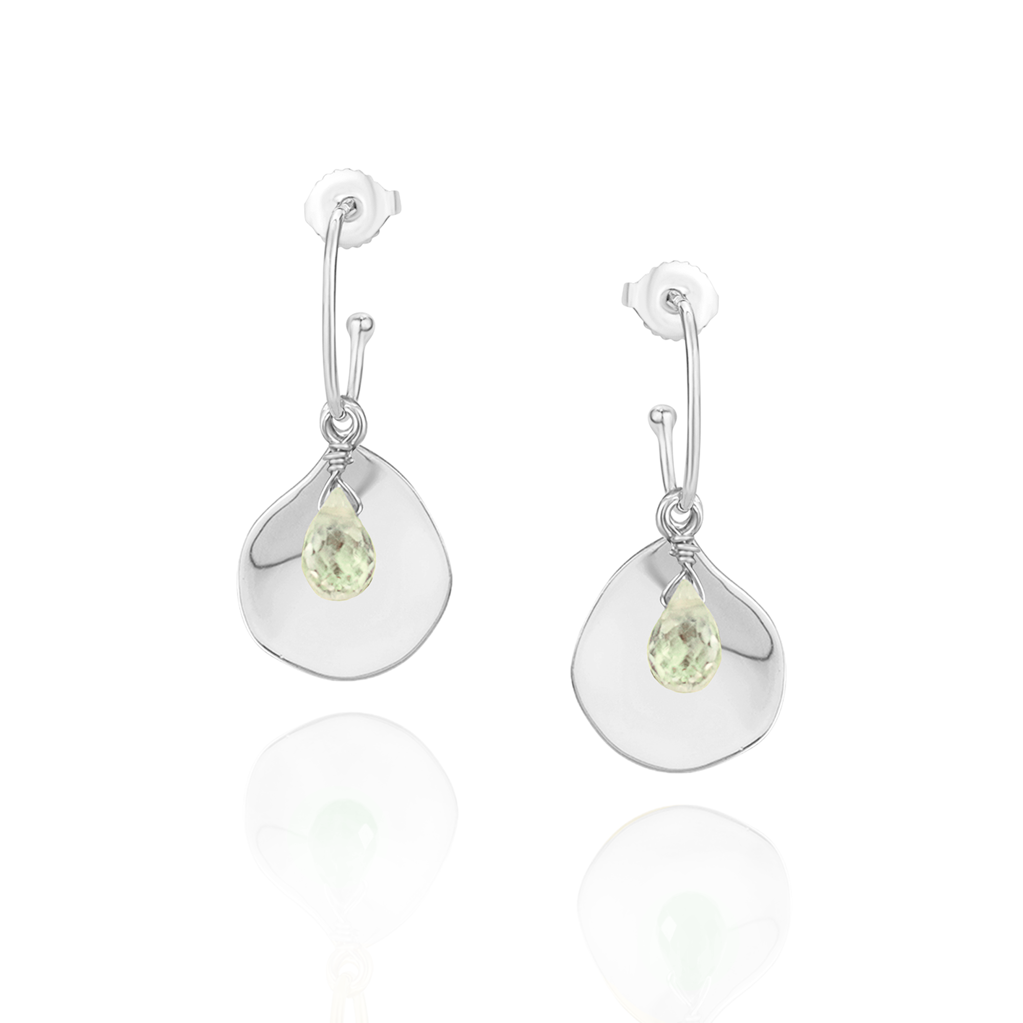 These flat teardrop and green amethyst briolette hoops make a mini statement effortlessly. Versatile and stylish, they can be paired with any outfit for a subtle touch of elegance. Perfect for any occasion, these hoops are a must-have for every wardrobe. Approximately 3.3 cm x 1.5 cm.