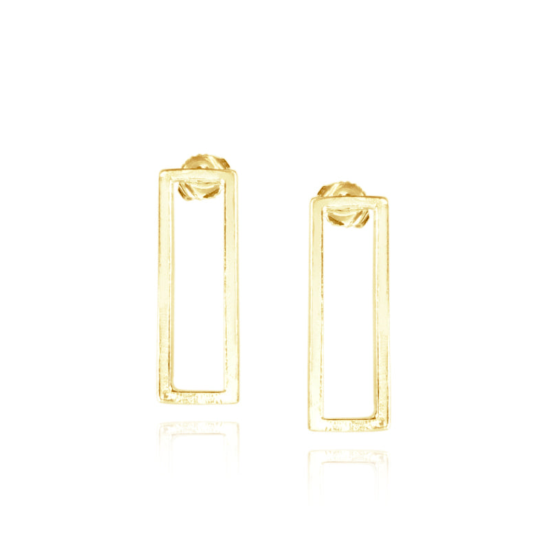 Open rectangle earrings made with 18ct gold plated sterling silver. A simple pair studs for a modern look. Approximately 2.6 cm x 0.9 cm.