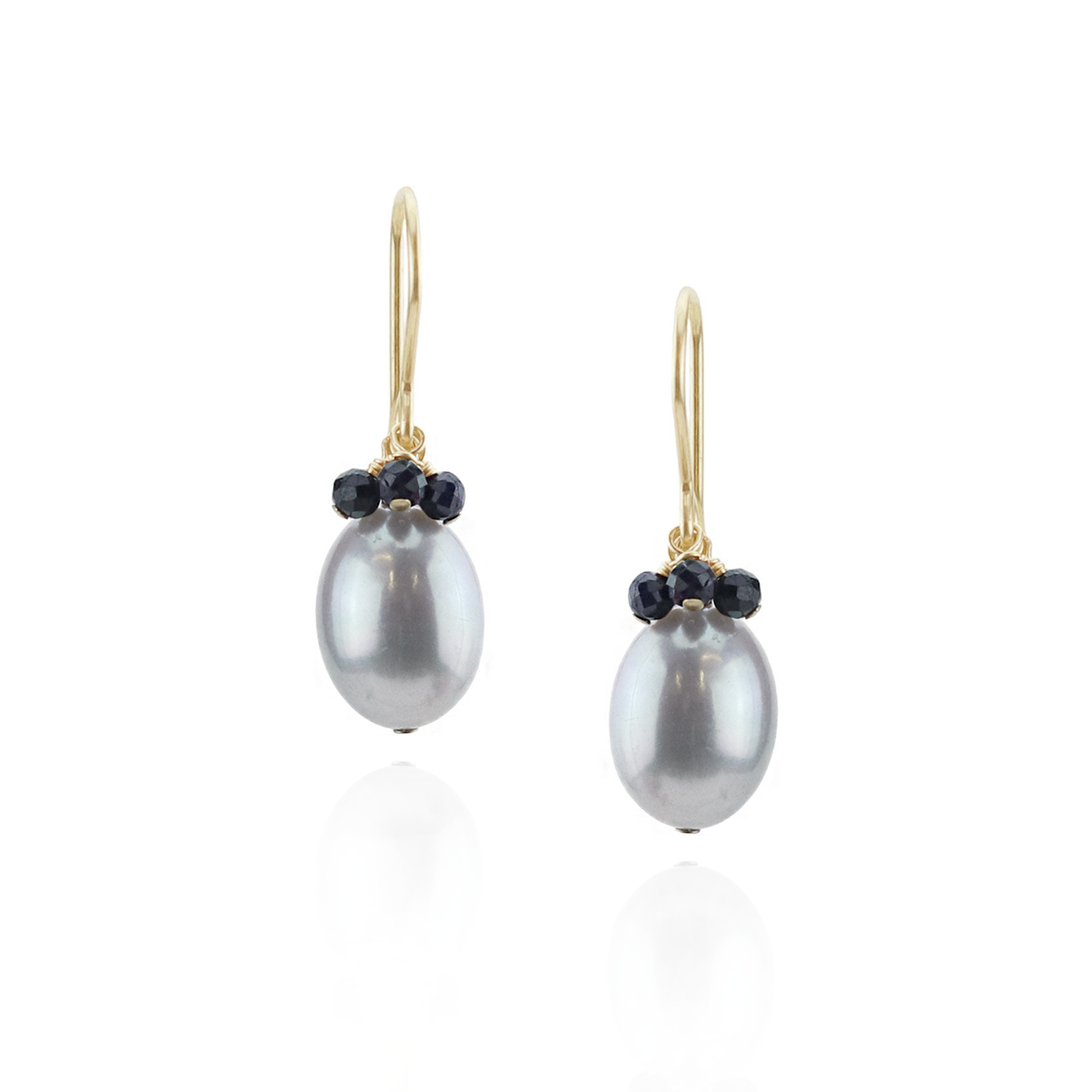 Grey Pearl & Sapphire Cluster Earrings. These earrings add a touch of sophistication to any outfit. The addition of faceted stones adds extra sparkle making them the perfect accessory. For other colour combinations, please get in touch.